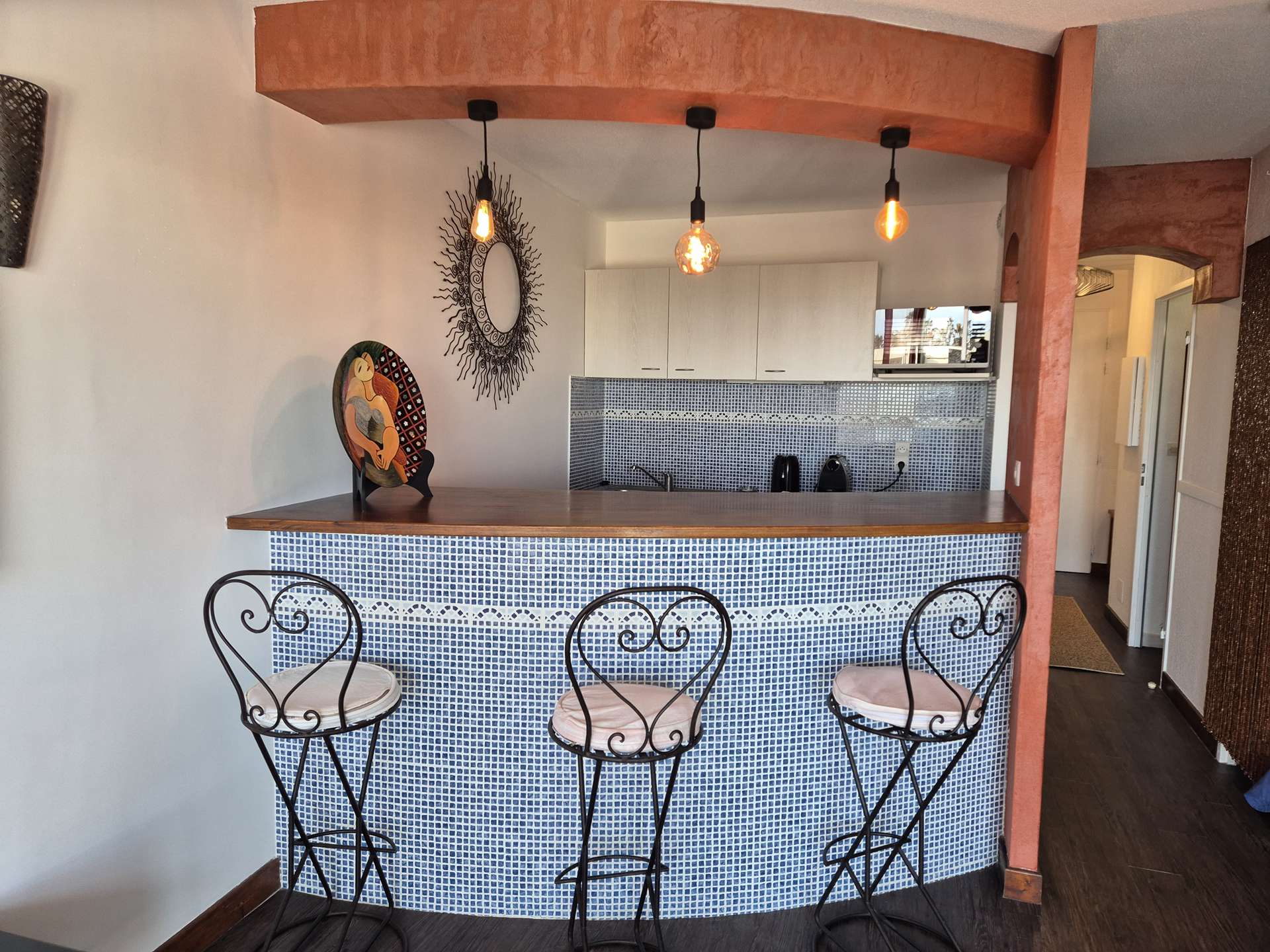 Ausgestattete Küche : Kochplatten, Kühlschrank, Mikrowelle...
