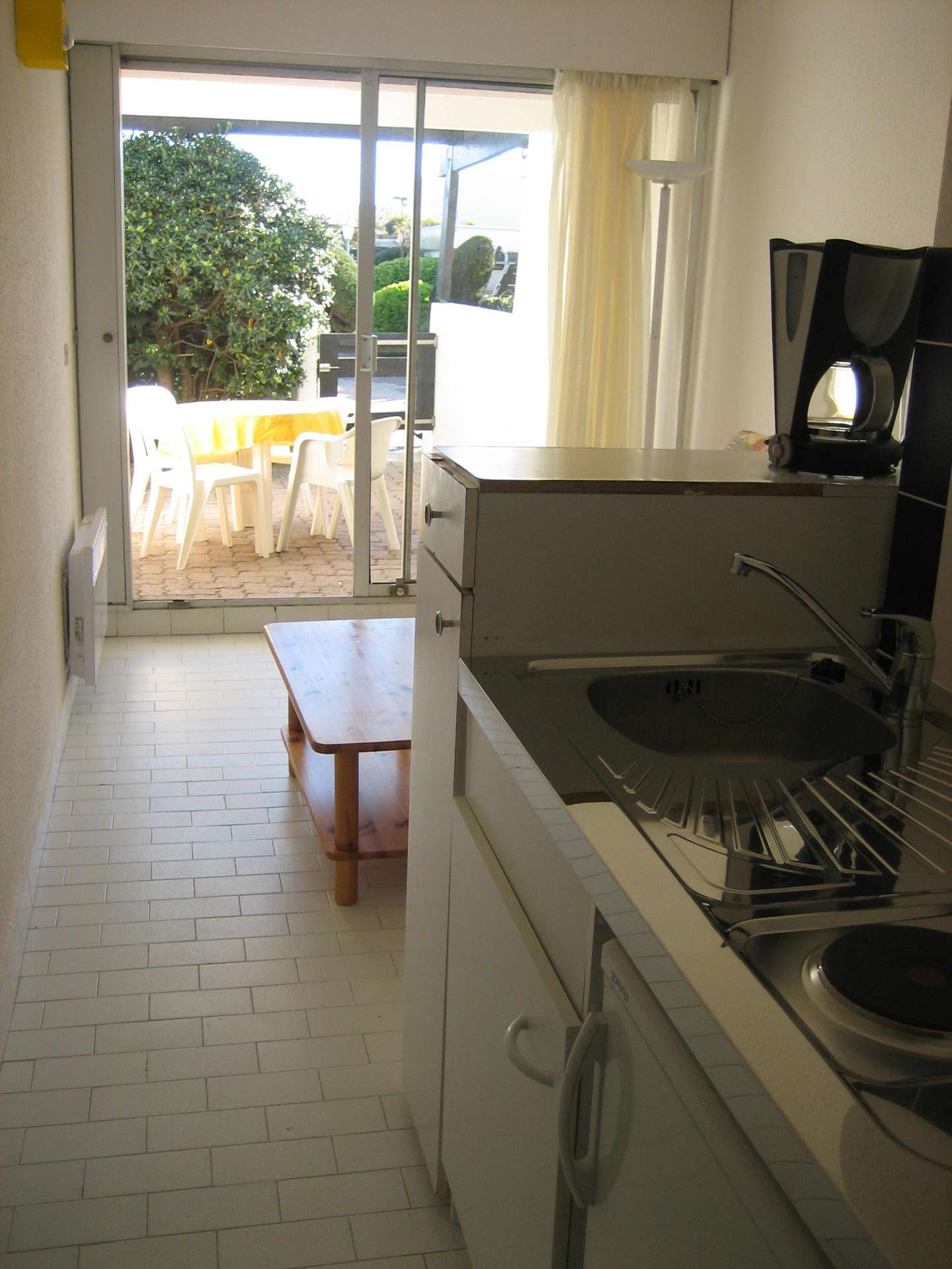 Coin cuisine équipé : plaques électriques, réfrigérateur, micro-ondes...