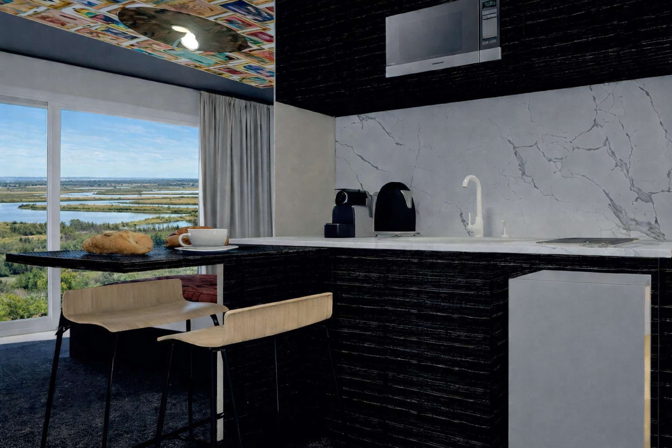 Angolo cottura : piano cottura, frigorifero, macchina da caffè, bollitore…